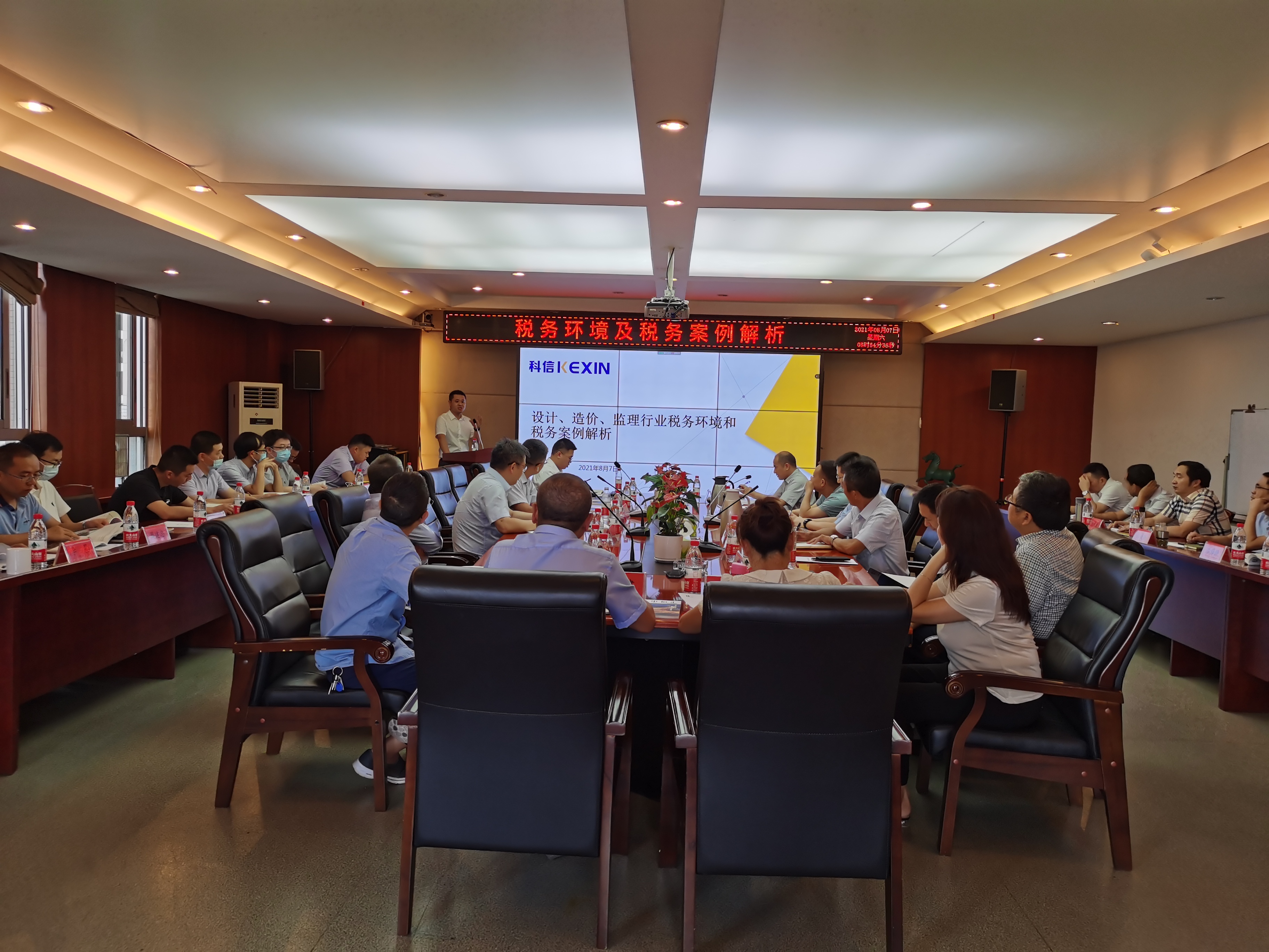 为帮助大家了解当前的税收环境和最新的税收政策,增强合法经营的意识,识别生产经营活动中存在的潜在税务风险,8月7日上午,公司特邀税务顾问蒋彬就“行业税务环境及税务案例解析”作专题培训,培训以现场+视频会议的方式举行。公司领导、各职能部门及各业务部门负责人共计70余人参加了本次会议。