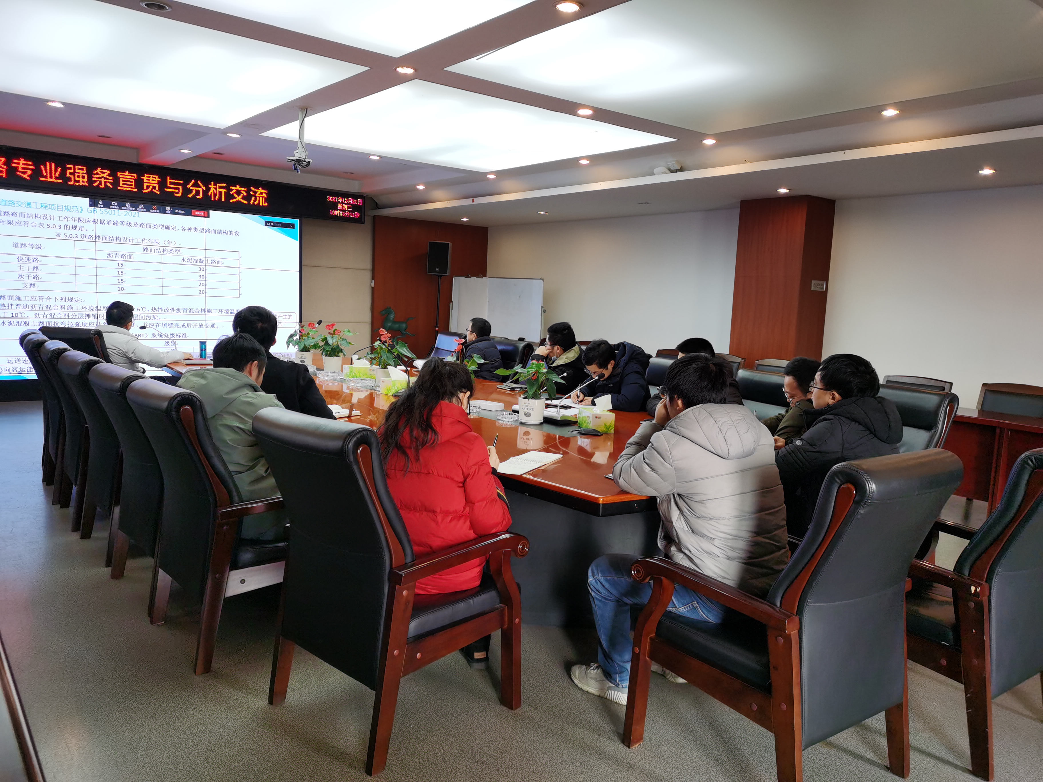 为增强各专业技术人员对强制性条文的重视程度,帮助大家更好地熟悉、理解和掌握强制性条文,在工程设计中更好地贯彻执行,进一步提升公司产品的质量,太阳成集团tyc122cc入口学院联合科技质量部策划组织开展“强条宣贯”专题系列活动。2021年12月21日上午10:00,强条宣贯系列活动第五期——道路专业强条宣贯与常见问题分析交流活动在公司七楼会议室举行。培训以现场+钉钉视频相结合的方式举行,集团各业务区道路专业共计17人参加了本次培训。