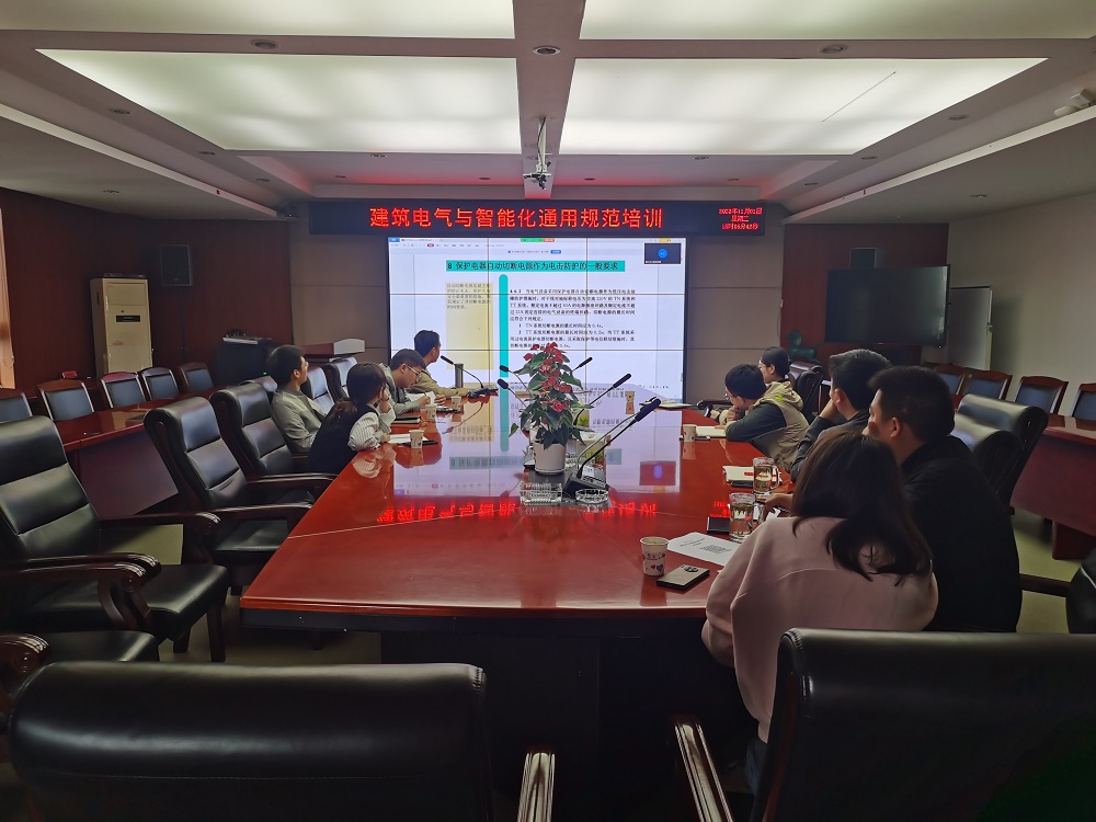 2022年3月10日,住建部发布公告,批准《建筑电气与智能化通用规范》(GB 55024-2022)为国家标准,自2022年10月1日起实施。为加强大家对强条规范的重视,帮助相关专业人员了解和掌握规范的重点条款,避免在工程设计中违反强条,11月1日,太阳成集团tyc122cc入口学院特邀请公司电气专业总工刘峻针对《建筑电气与智能化通用规范》做了专题培训。培训以现场+钉钉视频的形式举行,各业务区电气专业技术人员共计11人参加了本次培训。