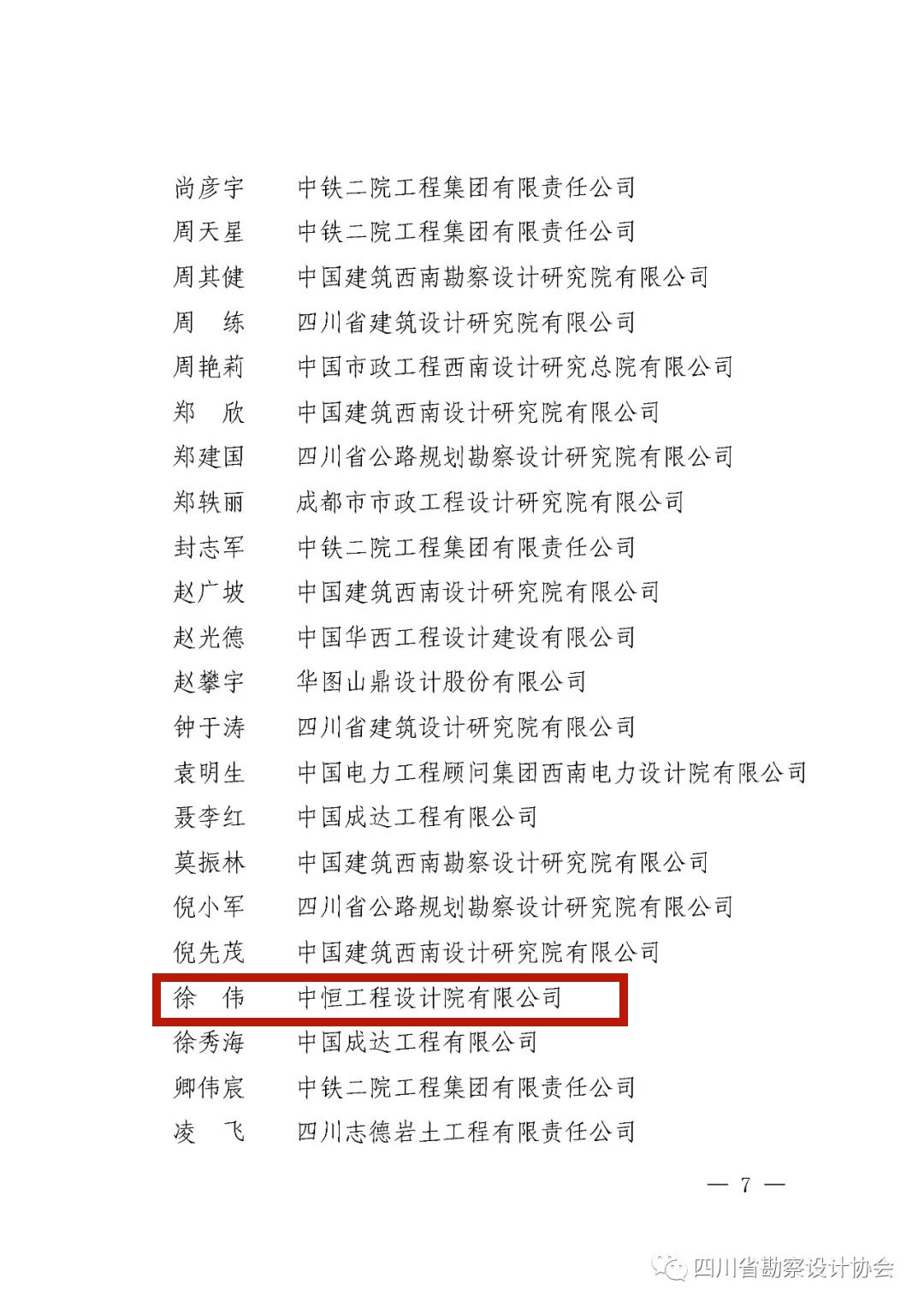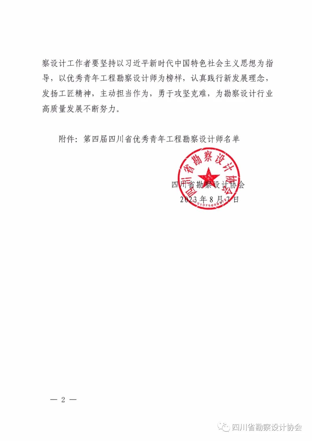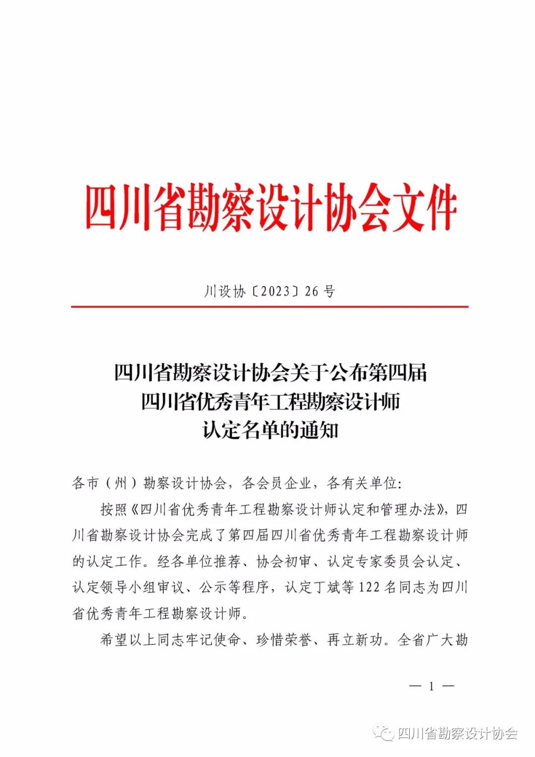 近日,太阳成集团tyc122cc入口集团旗下太阳成集团tyc122cc入口工程设计院有限公司员工肖春、徐伟获得第四届四川省优秀青年工程勘察设计师认定。