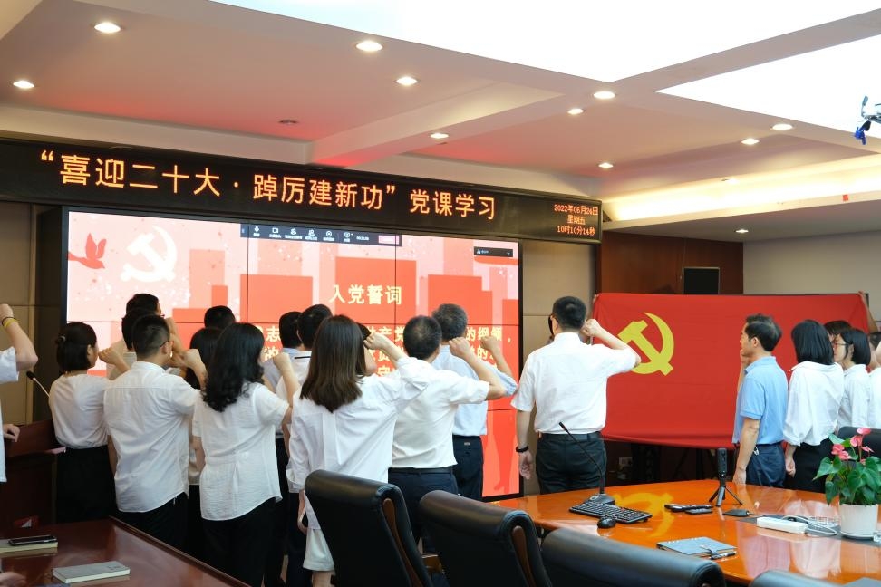 会上,在邹永红书记的带领下,全体党员面对党旗,举起右手,以饱满的热情和洪亮的声音宣读入党誓词,重温入党时的庄严承诺和坚定决心,在党旗下接受心灵的净化和洗礼,牢记共产党员的初心和使命。